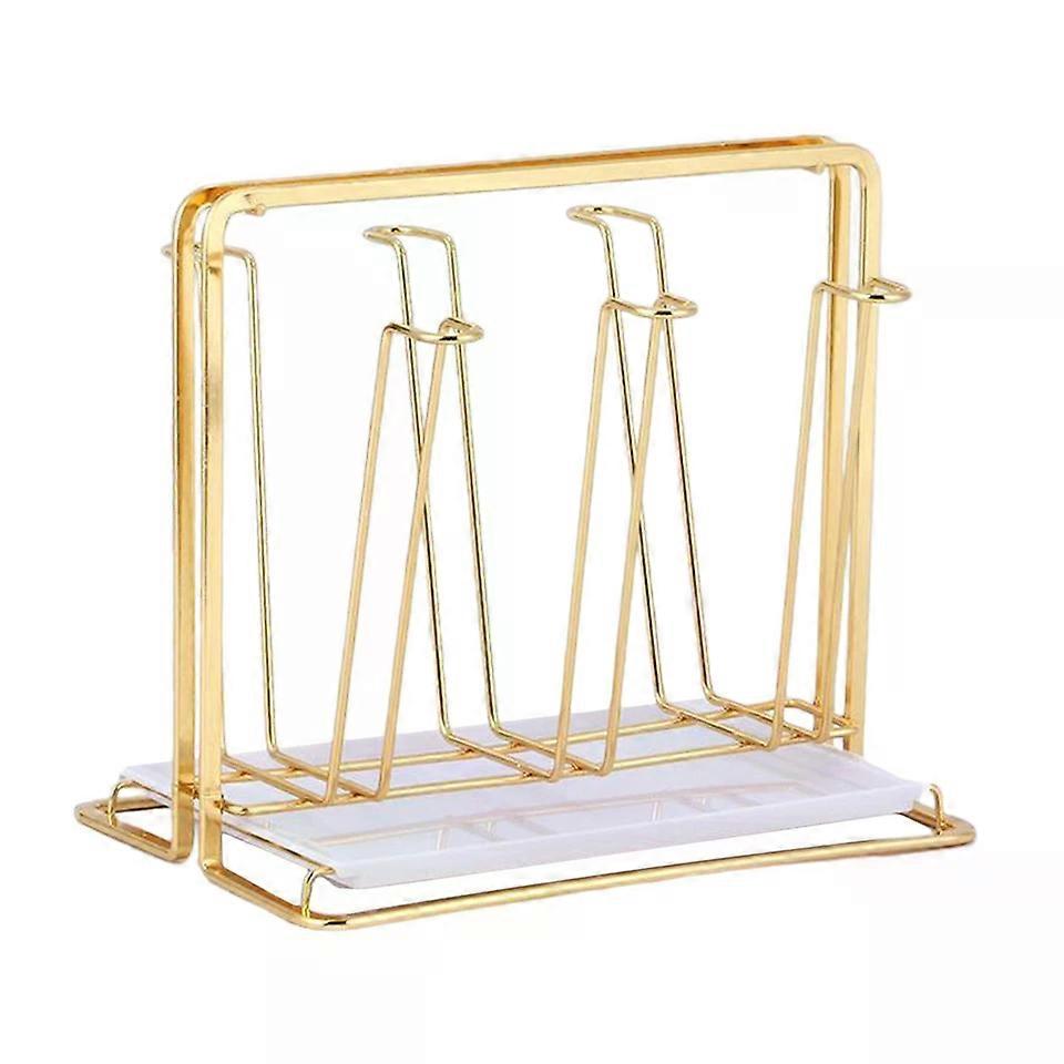 Cup Drying Rack, Metal Gold Cup Drainer Holder with 6 Hooks, Kitchen Countertop Organizer for Home