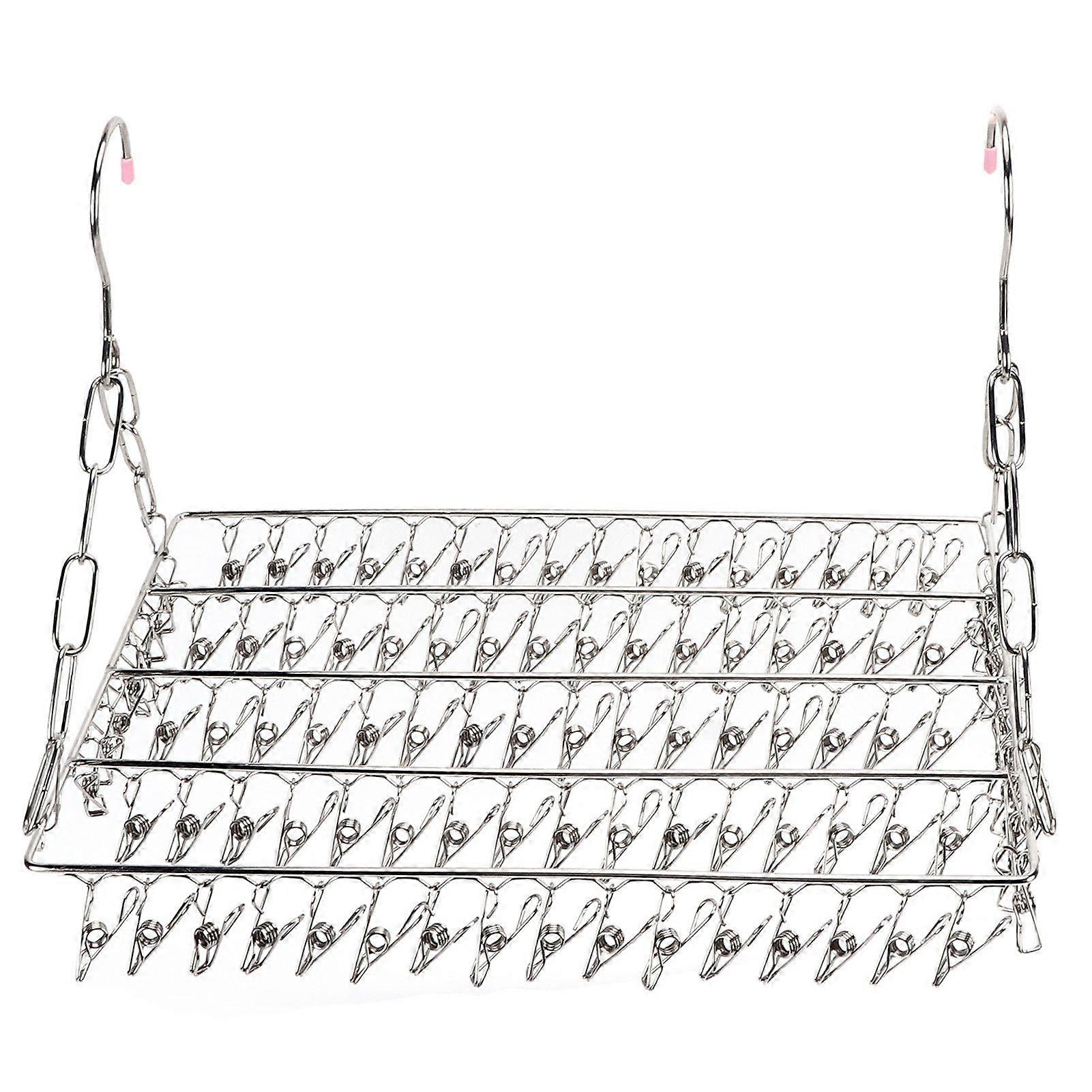Laundry Drying Rack Stainless Steel Multifunctional Hanging Silver Clothes Drying Rack for Hanging Clothes Towels Socks100 Clips
