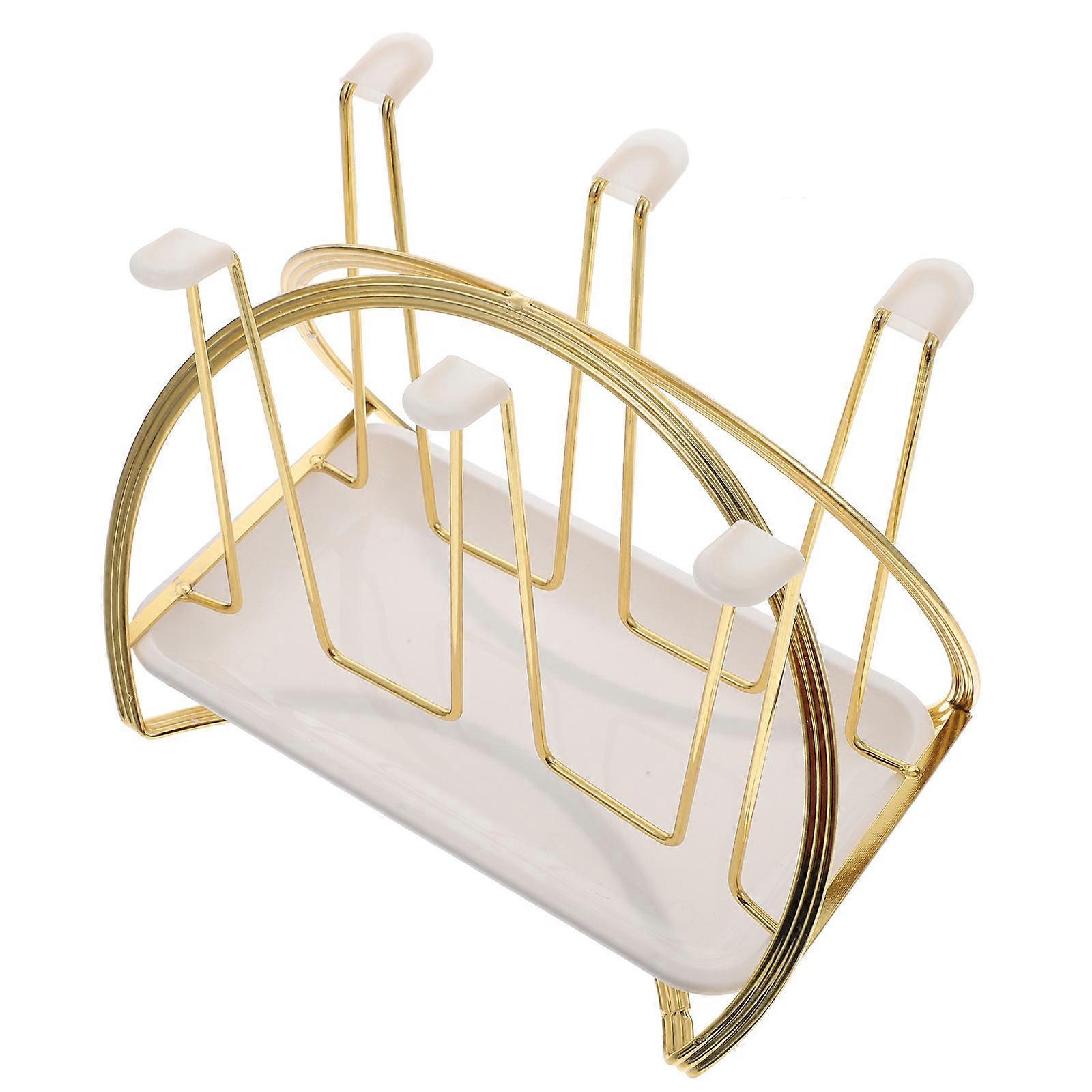 Iron Art Cup Drying Rack with Tray – Oval Draining Stand for Kitchen Glasses & Mugs, Wrought Iron Organizer for Household & Restaurant Use
