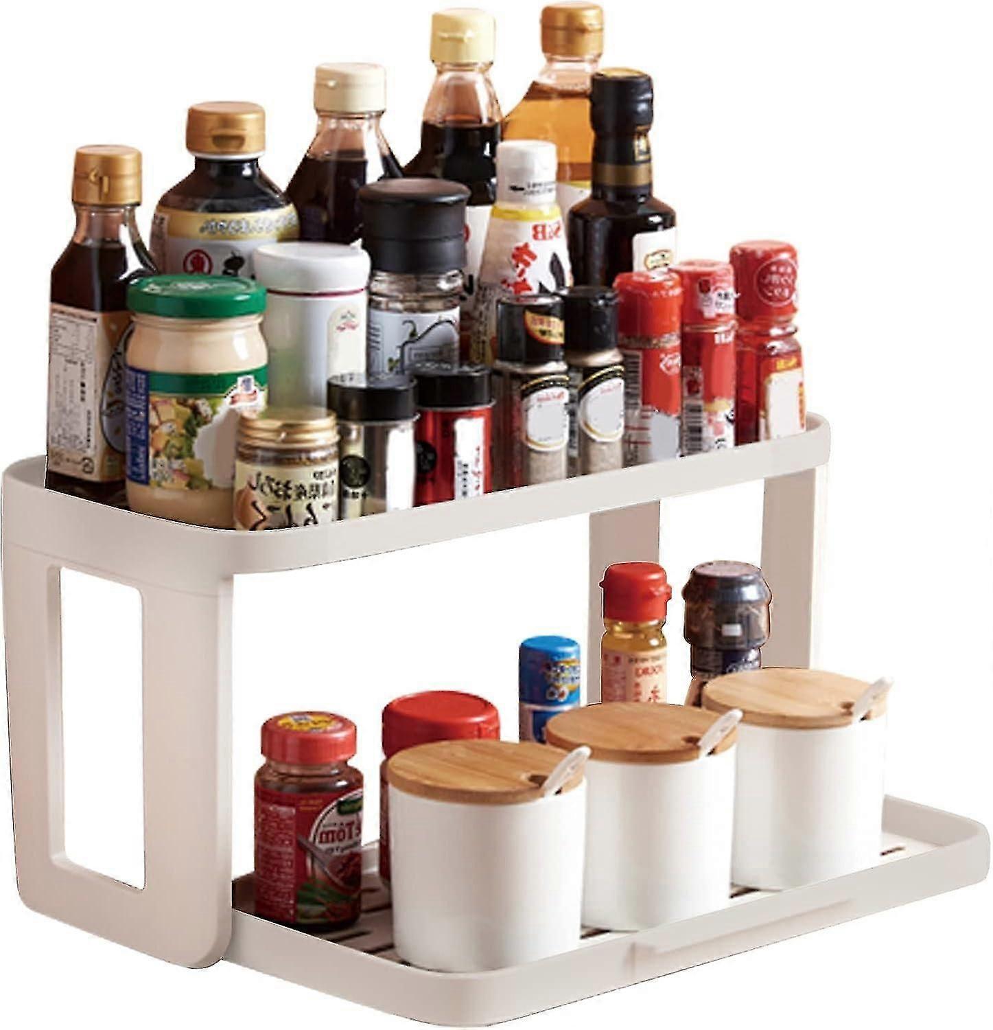 Kitchen Spice Rack (2 Tier), Plastic Spice Bottle Storage Rack, Seasoning Organizer Rack For Kitchen, White