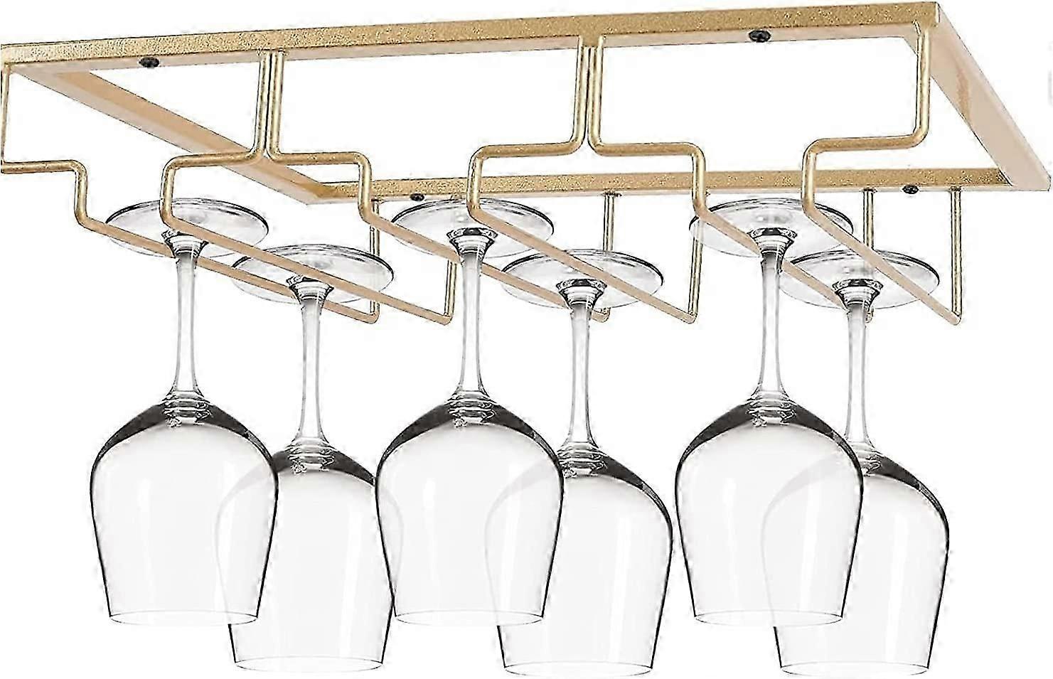 Decorative Metal Wine Glass Rack for Bar, Kitchen, 3 Tier, Under Cabinet, Stainless Steel, Black (Gold)