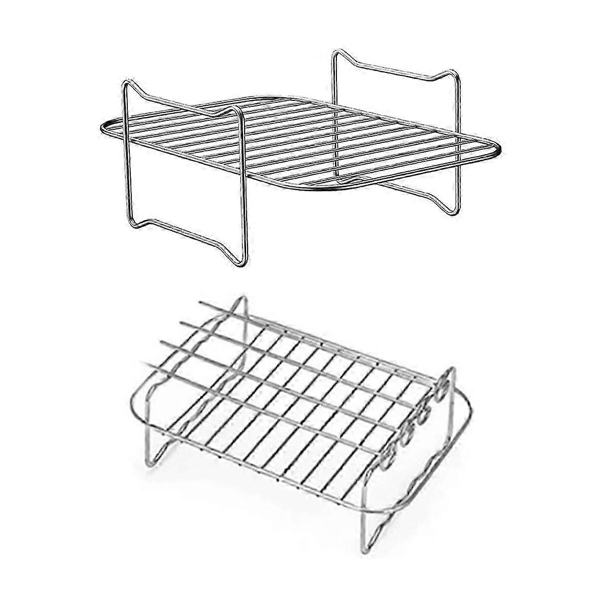 Double Basket Stainless Steel Grill Rack for Air Fryers, Cooking Accessories Holder