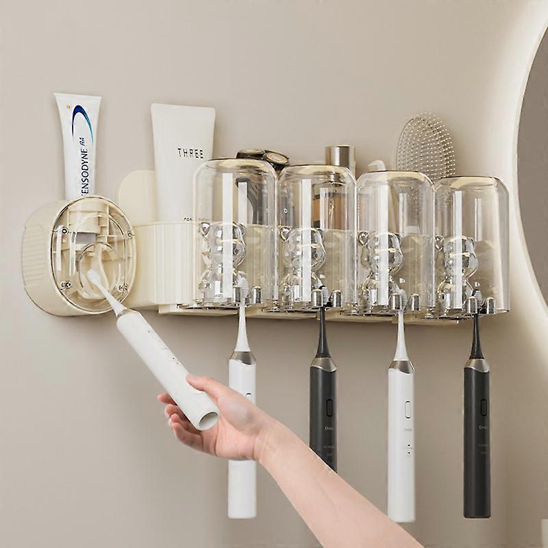 Cute bear toothbrush shelf, wall-mounted bathroom automatic toothpaste dispenser, bathroom mouthwash cup toothbrush shelf storage box