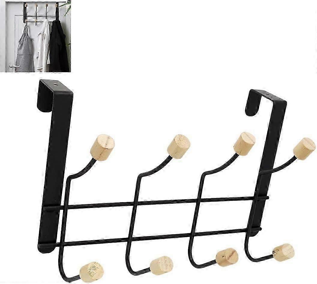 Coat Rack for Door - Coat Rack Hook - Door Hook for Bedroom, Bathroom Door Hook, Kitchen (Black Metal, 8 Hooks)