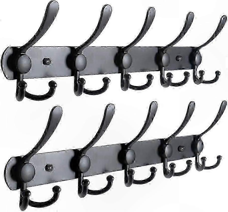 15-Hook Stainless Steel Wall Mounted Coat Rack, Black - Set of 2