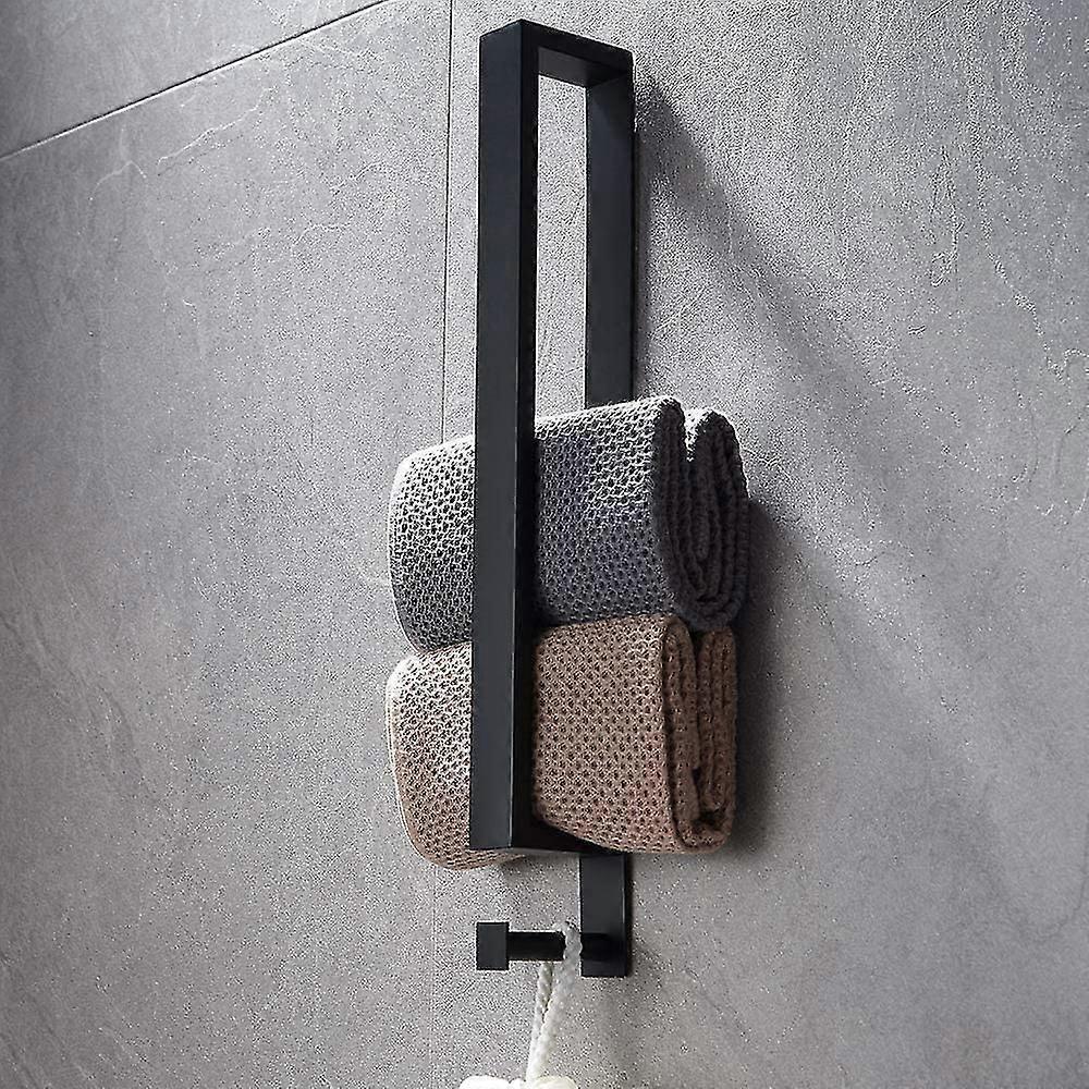 Stainless Steel Towel Rack, No Drilling Towel Rack, 40cm Self Adhesive Guest Towel Rack with Hook for Bathroom (Black)