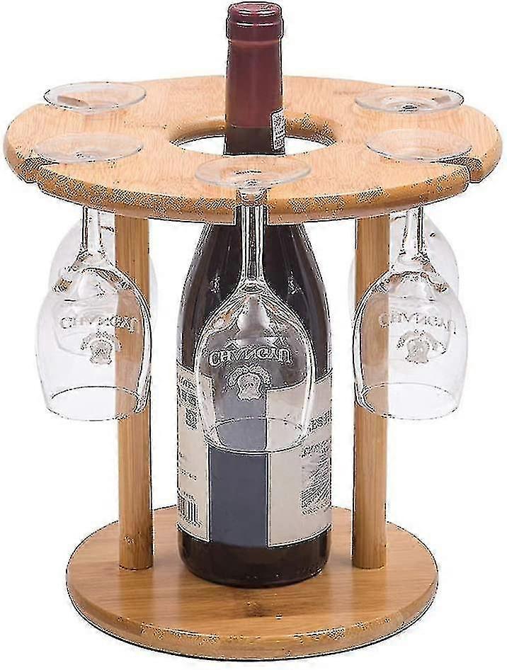 Wine Rack And Bottle Holder, In Natural Bamboo With 6 Glass Holders And 1 SZRH A-S