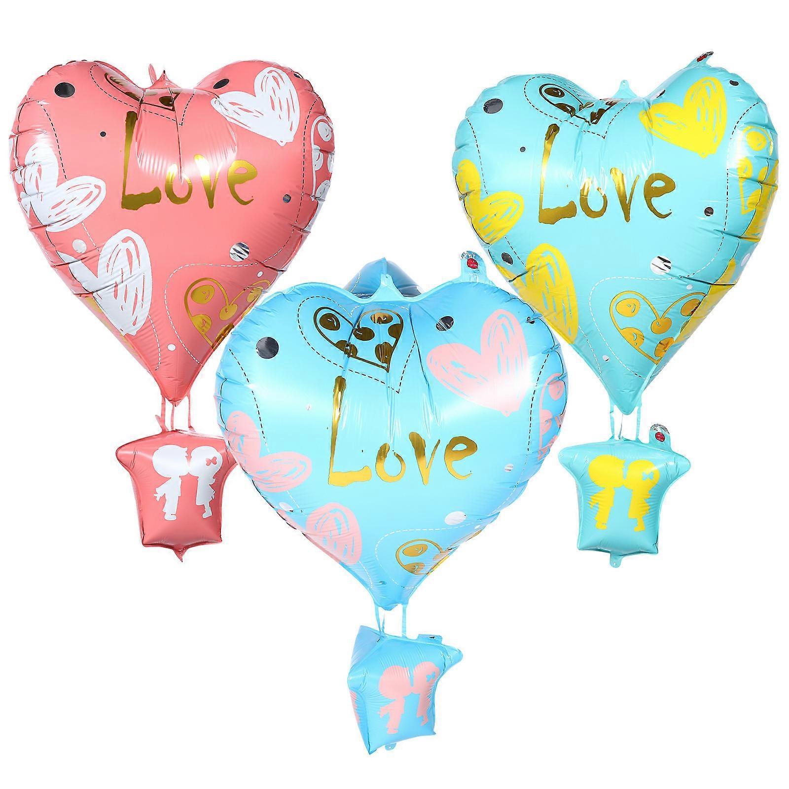 Aluminum Foil Balloons Blue Hot Air Balloon Decor Valentine's Day Celebration 3Pcs