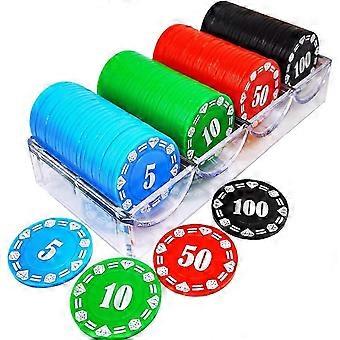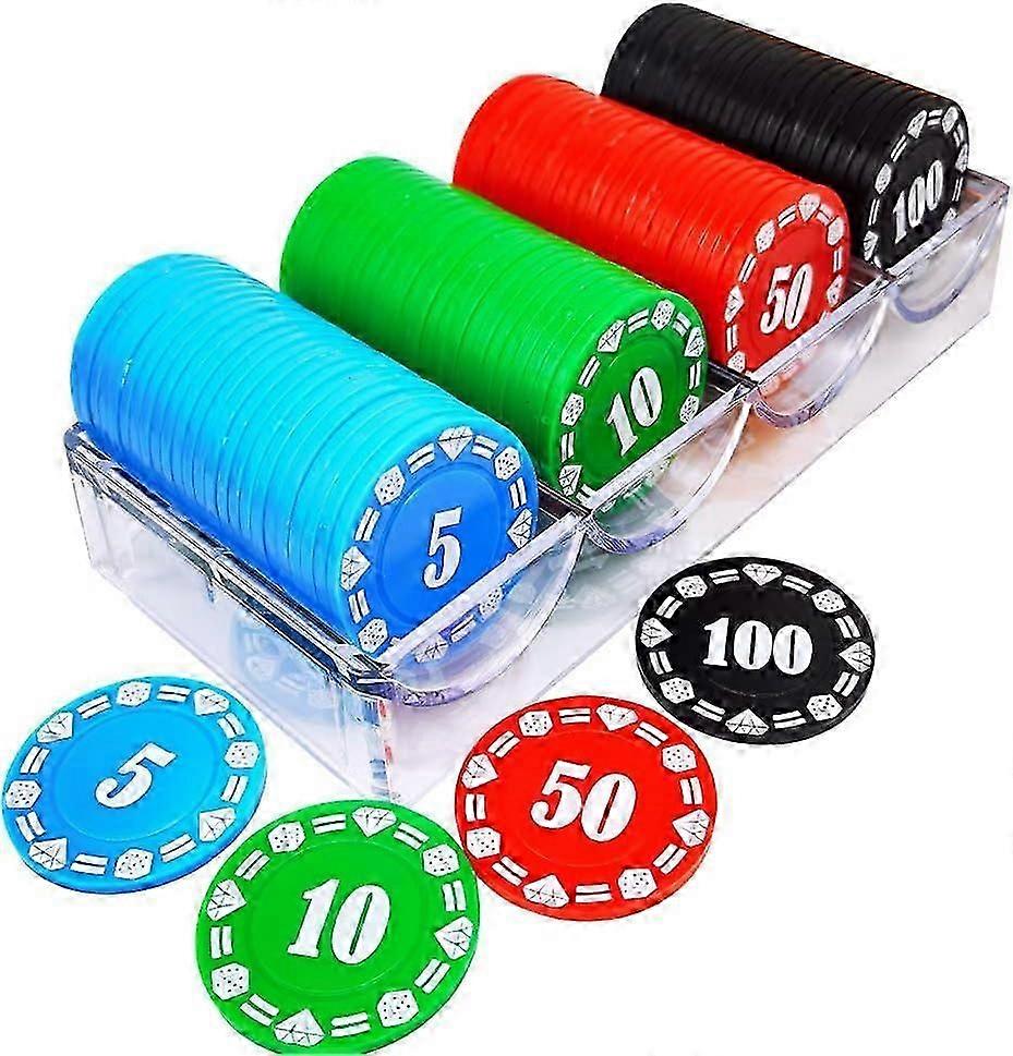Plastic Poker Chips 100 Poker Chip Set with Storage BoxDenomination Printed Casino Style Chip for Texas Home Game Nights,Holdem Poker Nights,Blackjack