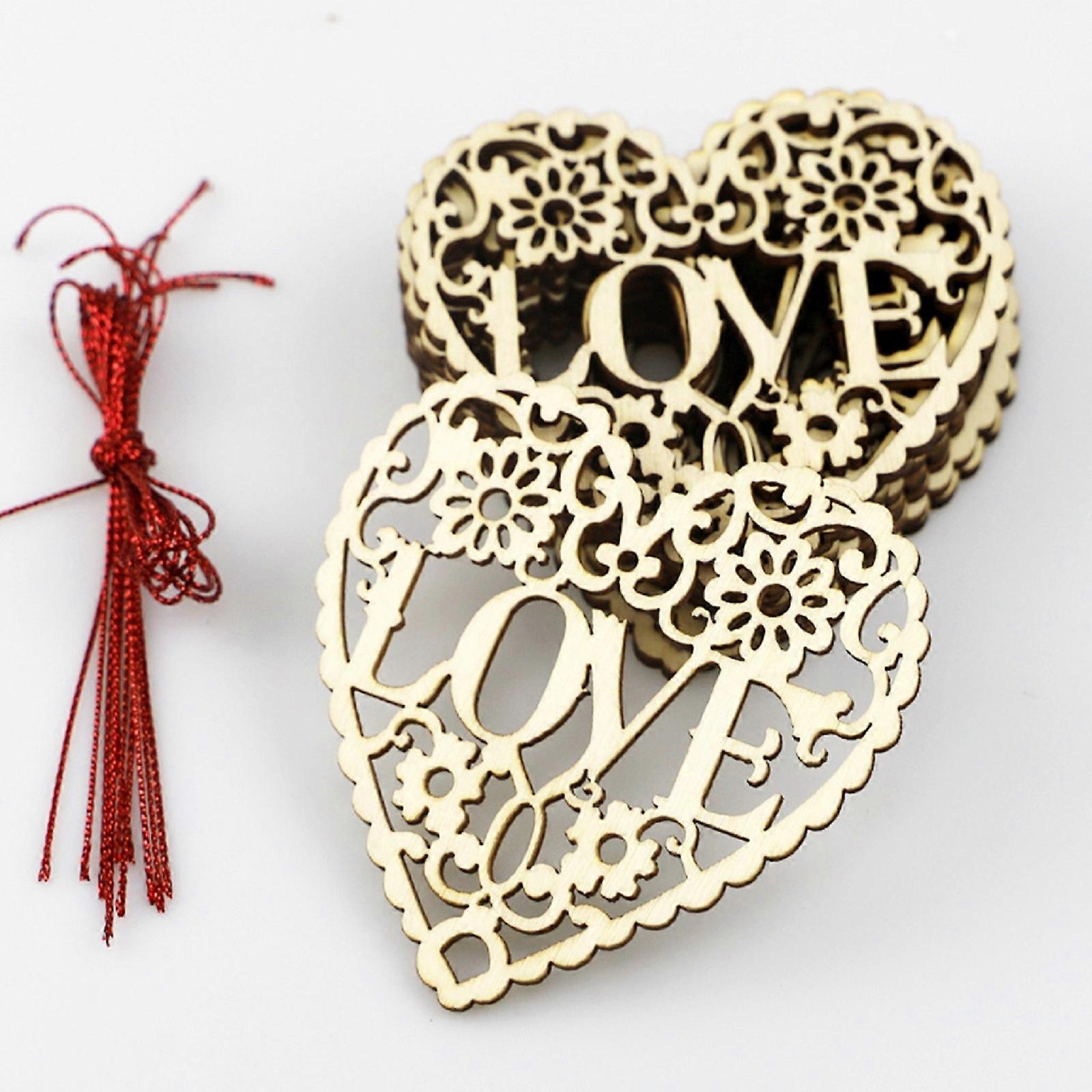 Heart-Shaped Wood Chips 10 Of Wooden Heart-shaped Pendants For Wedding Decoration