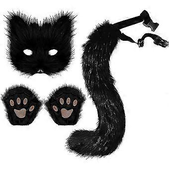 رقيق فو الفراء فو فو الثعلب الذيل مجموعة تأثيري مع قناع أفخم وقفازات مخلب لعيد الهالوين أو عيد الميلاد