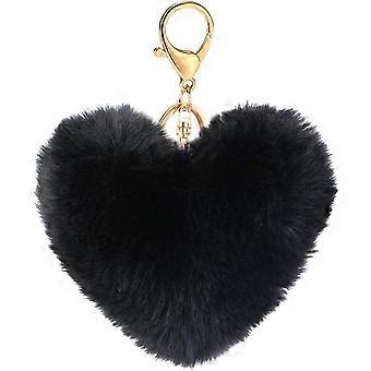 Fluffy Keyring Soft Plush Heart Shape Charm Ring Key Fob Bag Car Key Pendant, Black