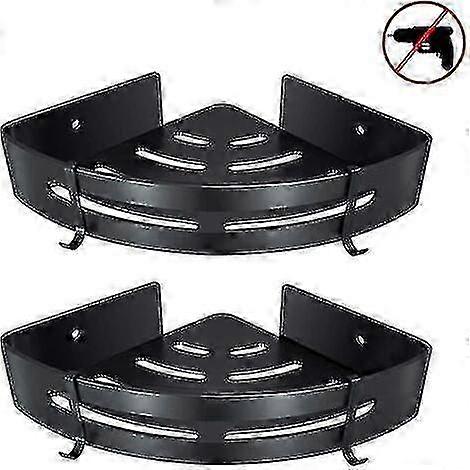 Corner Shower Shelf No Hole Bathroom Shelf Basket Shower Storage Aluminium Wall Mounted Shower Shelf Two Piece Storage Box Black