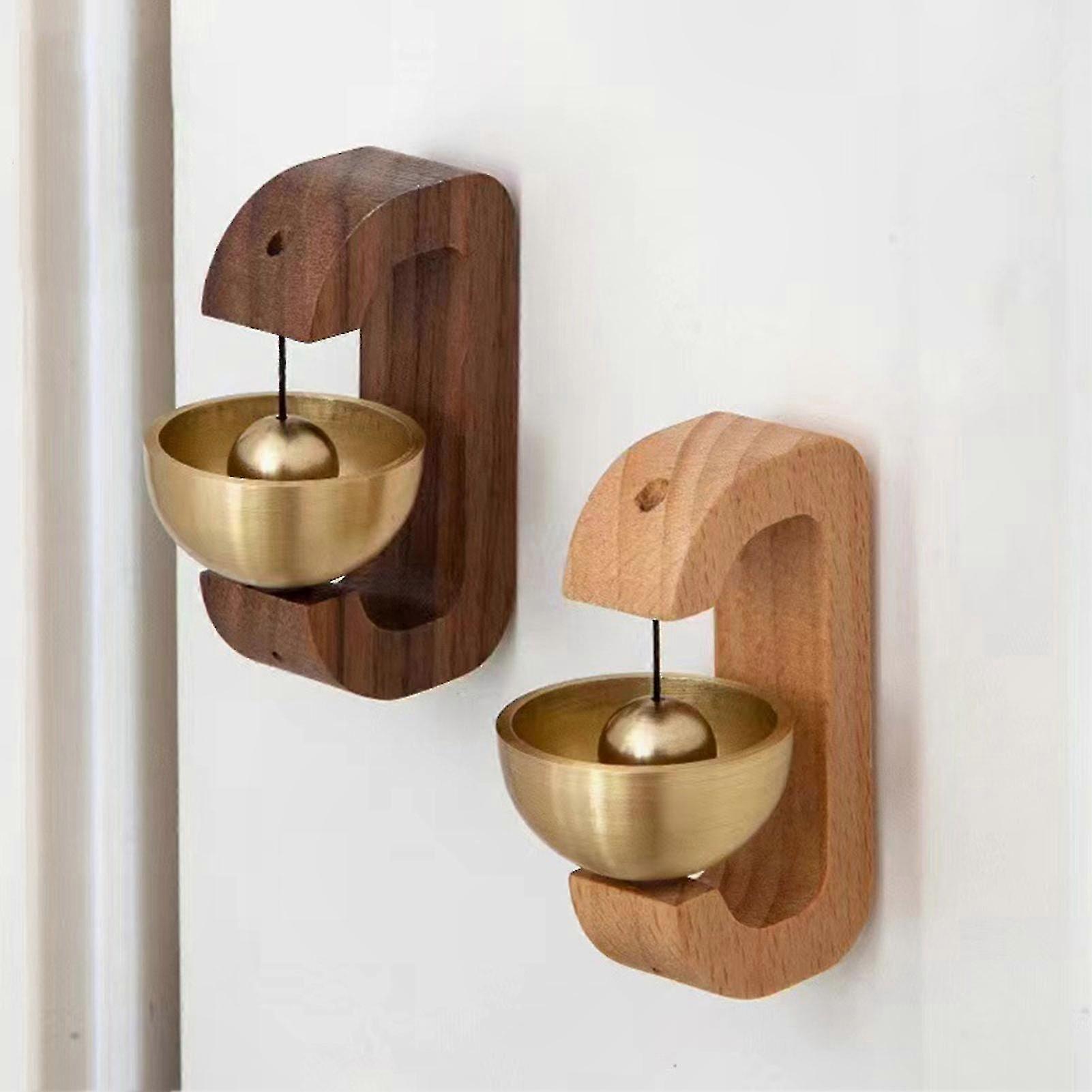 Magnetic Wooden Door Chime with Decorative Brass Bell for Entryway Alerts