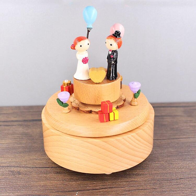 Novel Personality Wooden Music Box Home Decoration Crafts Carousel Children's Birthday Girlfriend Valentine's Day Gift 11x15cm
