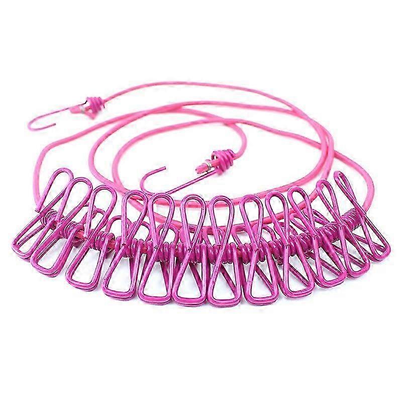 Rose Long Compact Flexible 12 Peg and 2 Hook Travel Washing Line 1.8M
