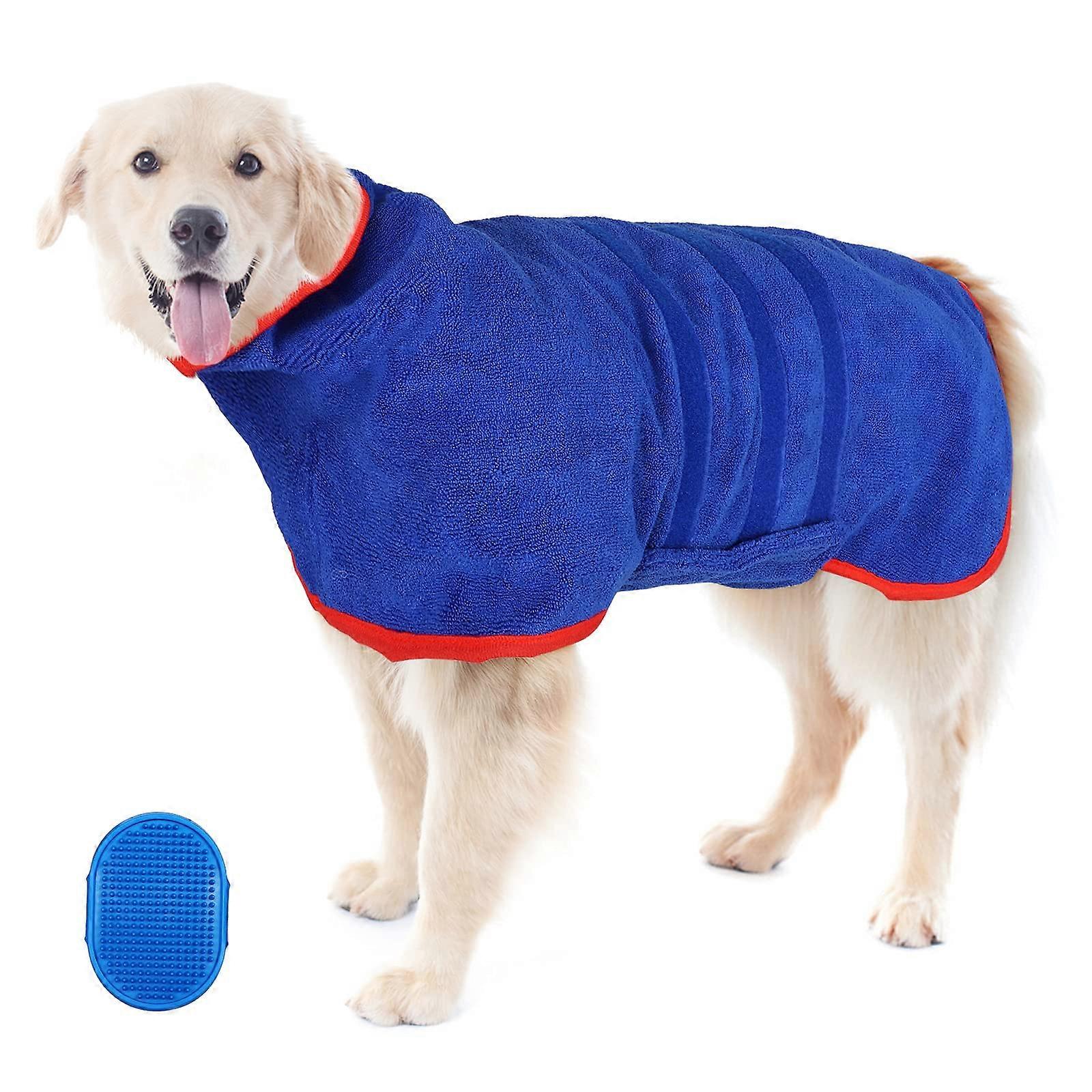 Microfiber Dog Bathrobe, Dog Bathrobe, Soft Bathrobe with Bath Brush, Dog Bath Towel, Quick-Drying, Adjustable Straps, Super Absorbent Moisture, Dog T