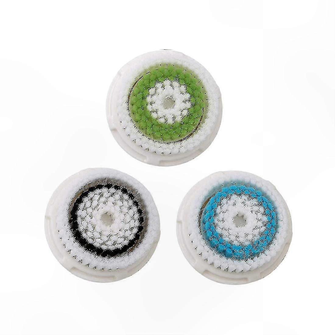 Facial Cleansing Brush Heads 3-Pack, Exfoliating Replacement Heads for Pores (Blue, Black, Green)