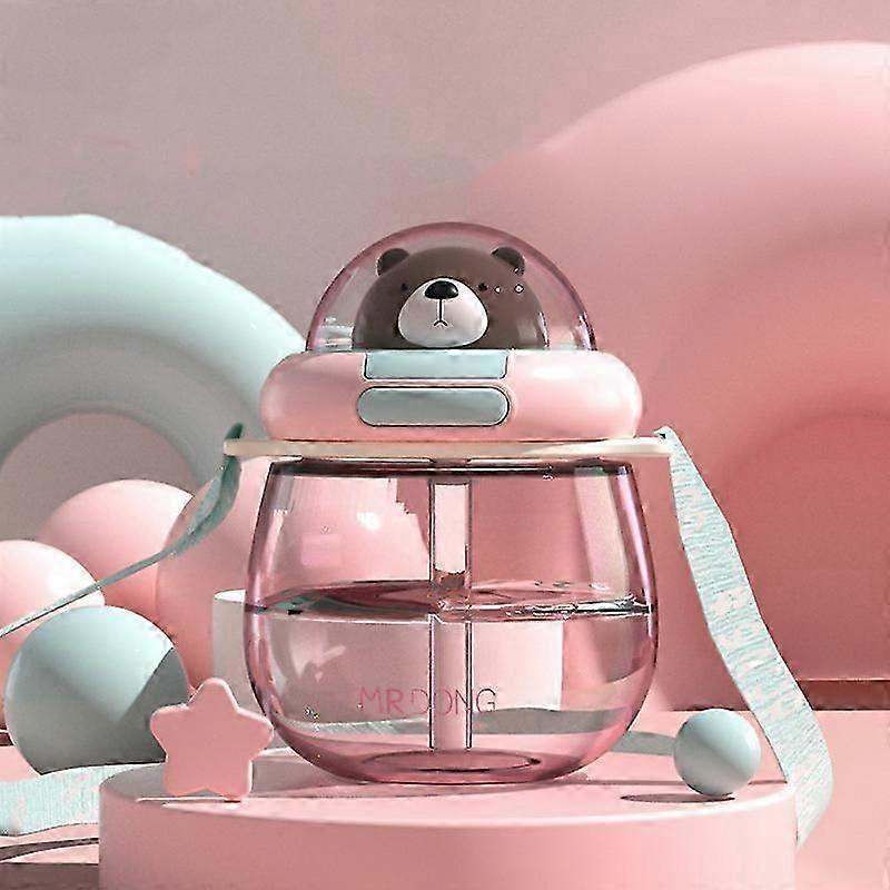 Kids Water Bottles Cute Bear Straw Cup Leakproof Portable Cup With Shoulder Strap
