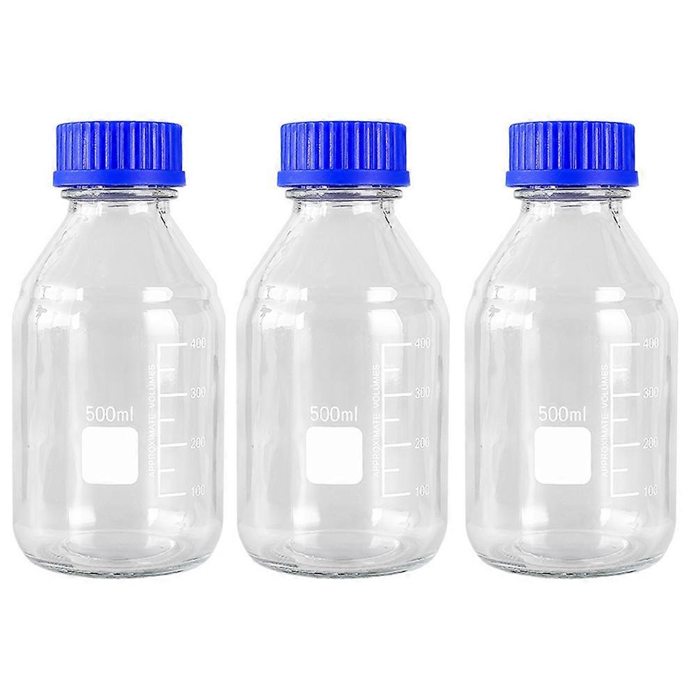 Lab Reagent Bottles Glass Chemical Bottle Leak-Proof Scientists 500ml Chemical Storage 3Pcs