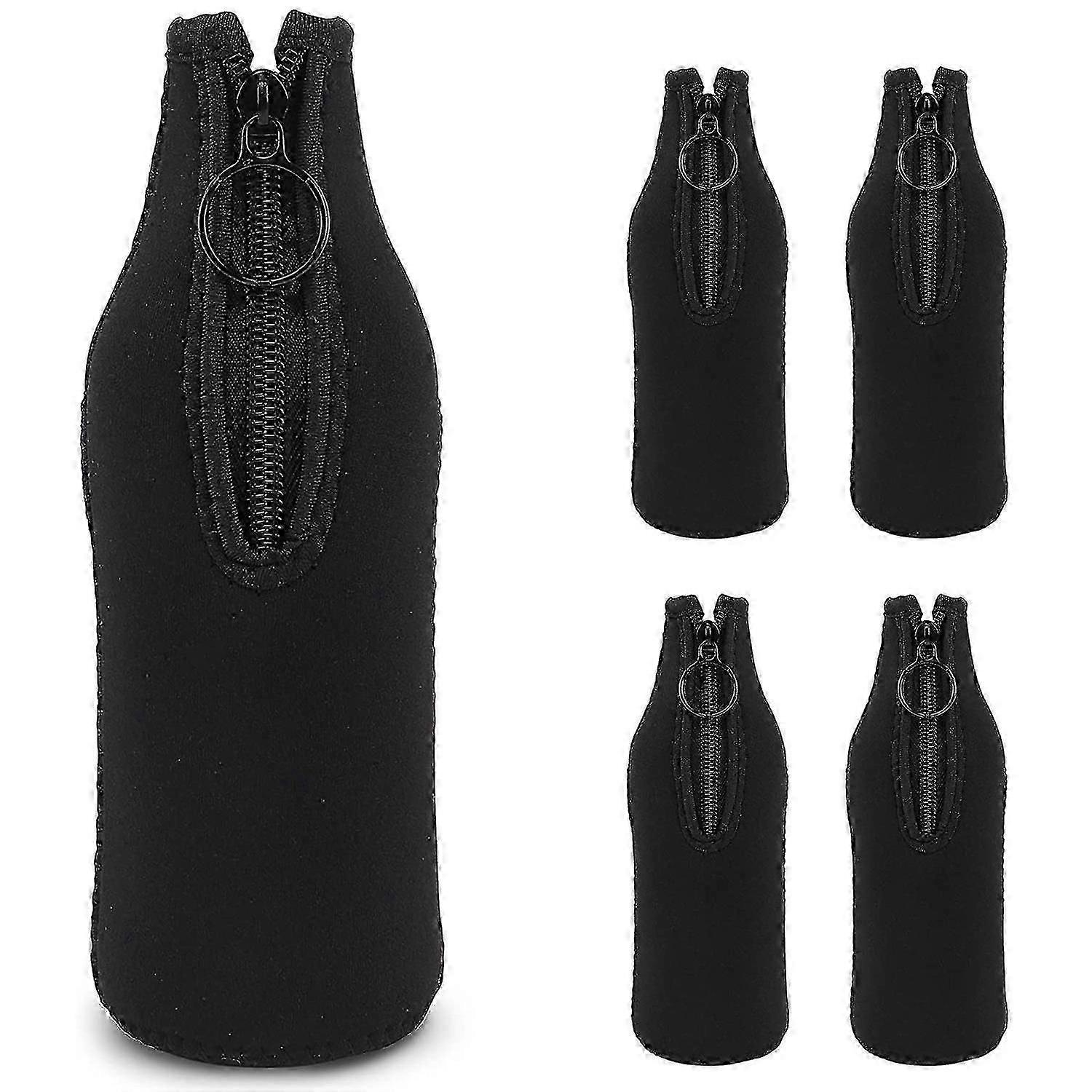 KEEP BEER COLD--Waterproof neoprene material, keep your beer cold and your hands warm and anti-slip, protects the bottle if you drop it.This could help you instantly identify your drink.WELL-MADE and HIGH QUALITY MATERIALS--Won't fray at edges, sealed and stitched seams, top and bottom for longer life with no glue. Waterproof neoprene material has no odor, extra insulation. Great stretch ability, strong and durable, machine washable.ZIPPER DESIGN--Makes your beer easy to take off and put on, folds easily to fit into your pocket or purse.Won't fray at edges, sealed and stitched seams, top and bottom for longer lifeperfect for home bar and picnic, make your life more beautifulwith no glue.Product Name: Beer Bottle KooziesColour:blackMaterial:NeopreneSize:about 19 x 6.5cmCapacity: 330ml (12oz)Package Contents:5 x Beer Bottle Cooler SleevesOnly the above package content, other products are not included.Note: Light and different displays may cause the color of the item in the picture a little different from the real thing. The measurement allowed error is +/- 1-3cm.