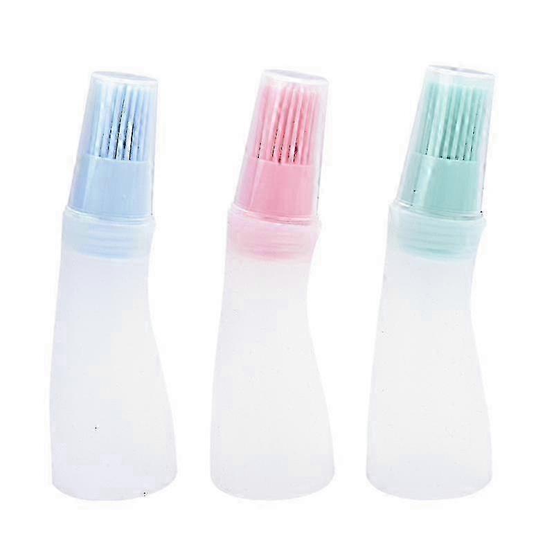 3-Piece Silicone Oil Bottle with Food Brush and Squeeze Spout featuring a Clear Lid