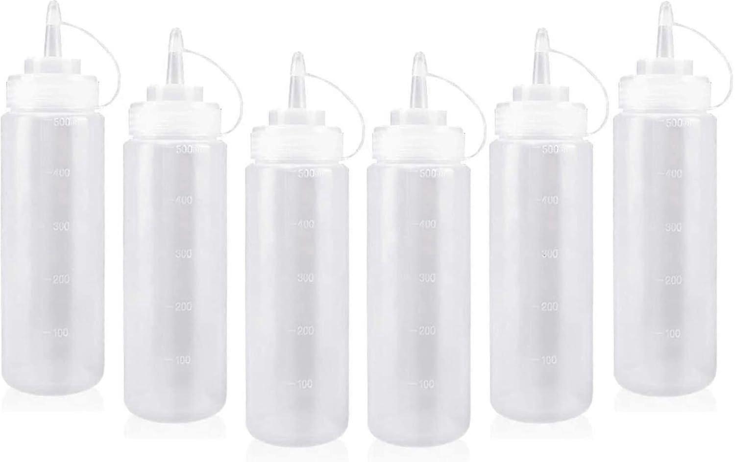 Sauce Bottle, 6pcs 500ml Sauce Bottle with Cap, Condiment Bottle, Sauce Bottle, Squeeze Bottles, Sauce Container for Painting, Cooking, Ketchup