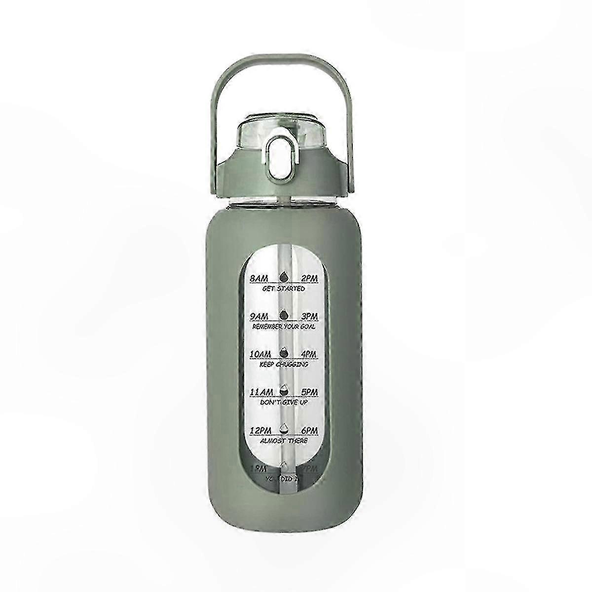 64oz Glass Water Bottle with Straw, Silicone Sleeve, Time Marker, Leakproof Design