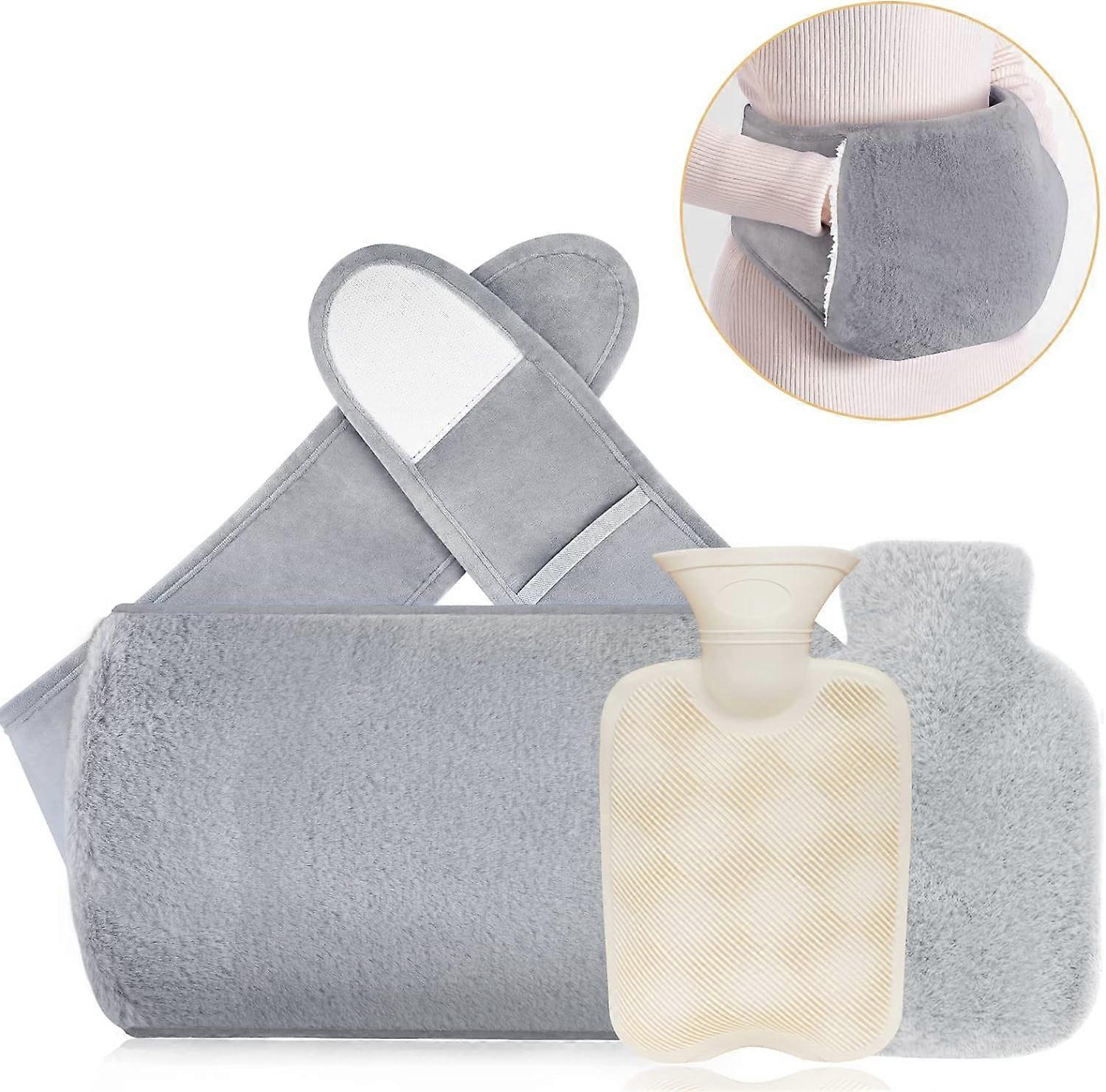 Fluffy Hot Water Bottle with Waist Cover Grey for Period and Pain Relief