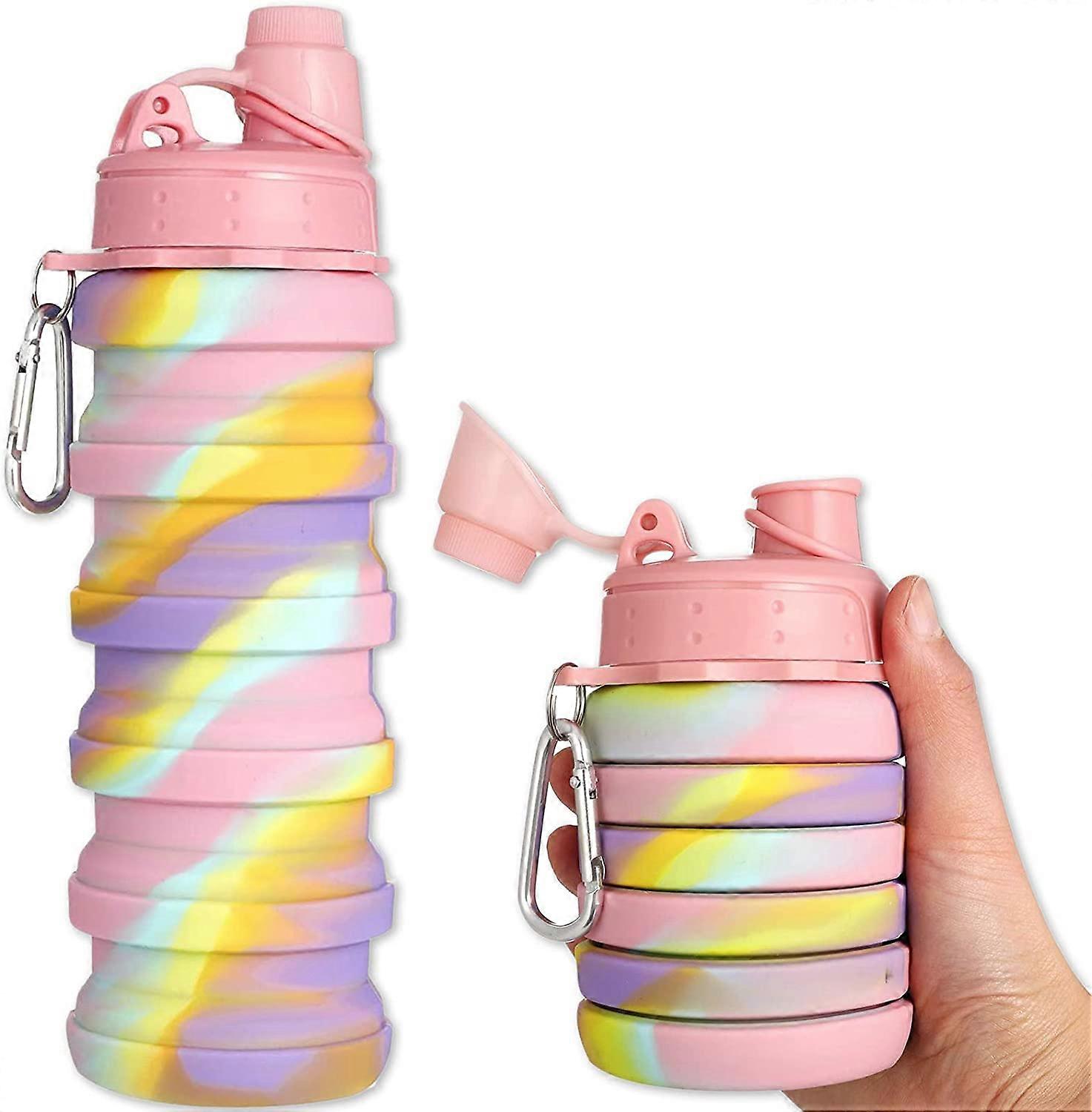 Collapsible Water Bottle for Kids, Camouflage Color Food-Grade Silicone Portable Leak-Proof Travel Water Bottle 500ml for School, Travel, Camping and