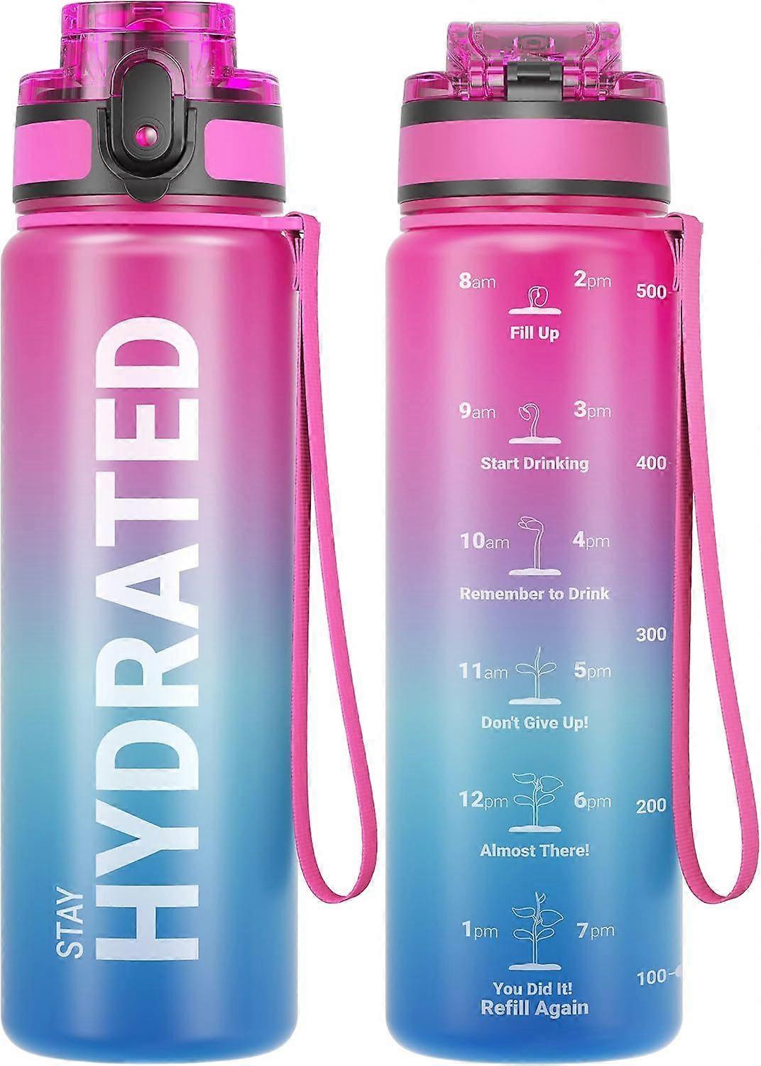 Sailor Leakproof Water Bottle 1L Tritan BPA Free Motivational Sport Drinks Bottle with Clear Time Marker, Lock Cover, Easy Clean Brush, Durable for Gy