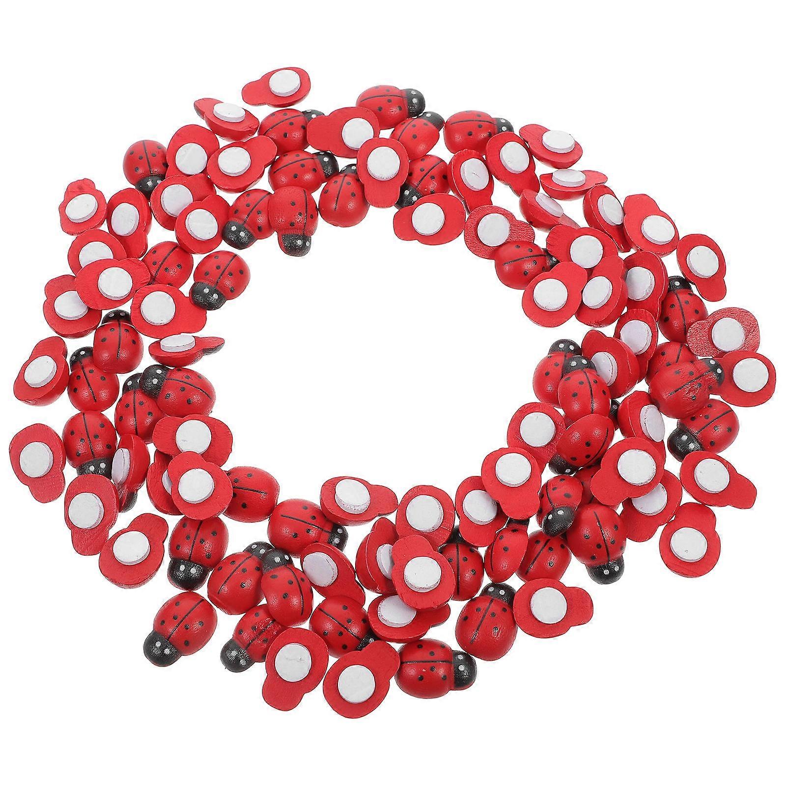 Ladybug Ornaments Red Wooden Ladybug Stickers For Diy Crafts Self-Adhesive Mini Ladybug Figurines 100Pcs