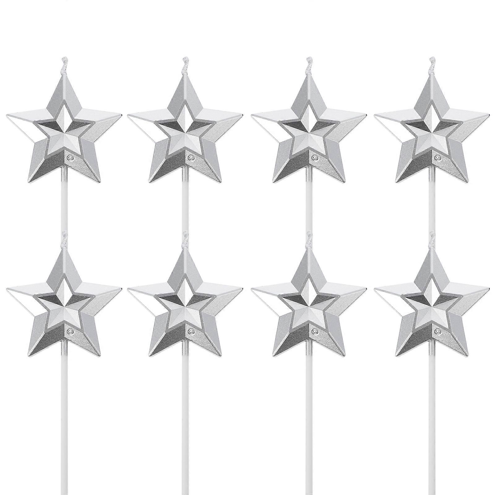 Cake Ornaments Star Shape 3D Decoration 10.7cm x 4.7cm x 1.5cm Silver Party Centerpiece 8Pcs