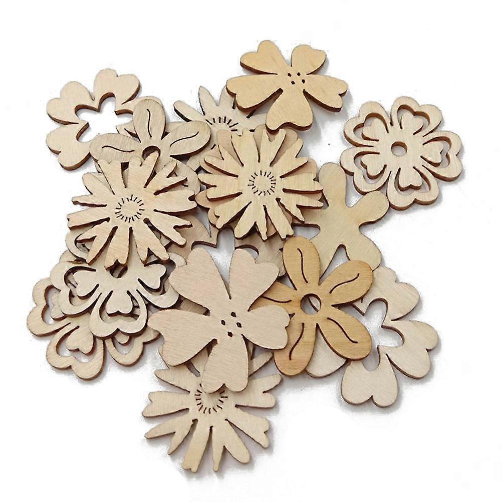 Wood Embellishments Flower Decorations Beige 3.5x3.5x0.3cm DIY Craft Glueable Festive Atmosphere 50Pcs