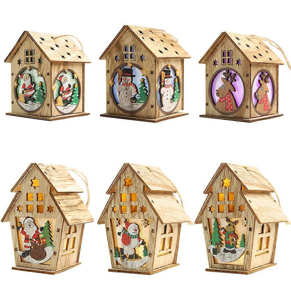 Wood Hanging Ornaments Log Cabin Style Luminous Cabin Single Roof For Friends 7 x 7 x 9 Cm 1Pcs