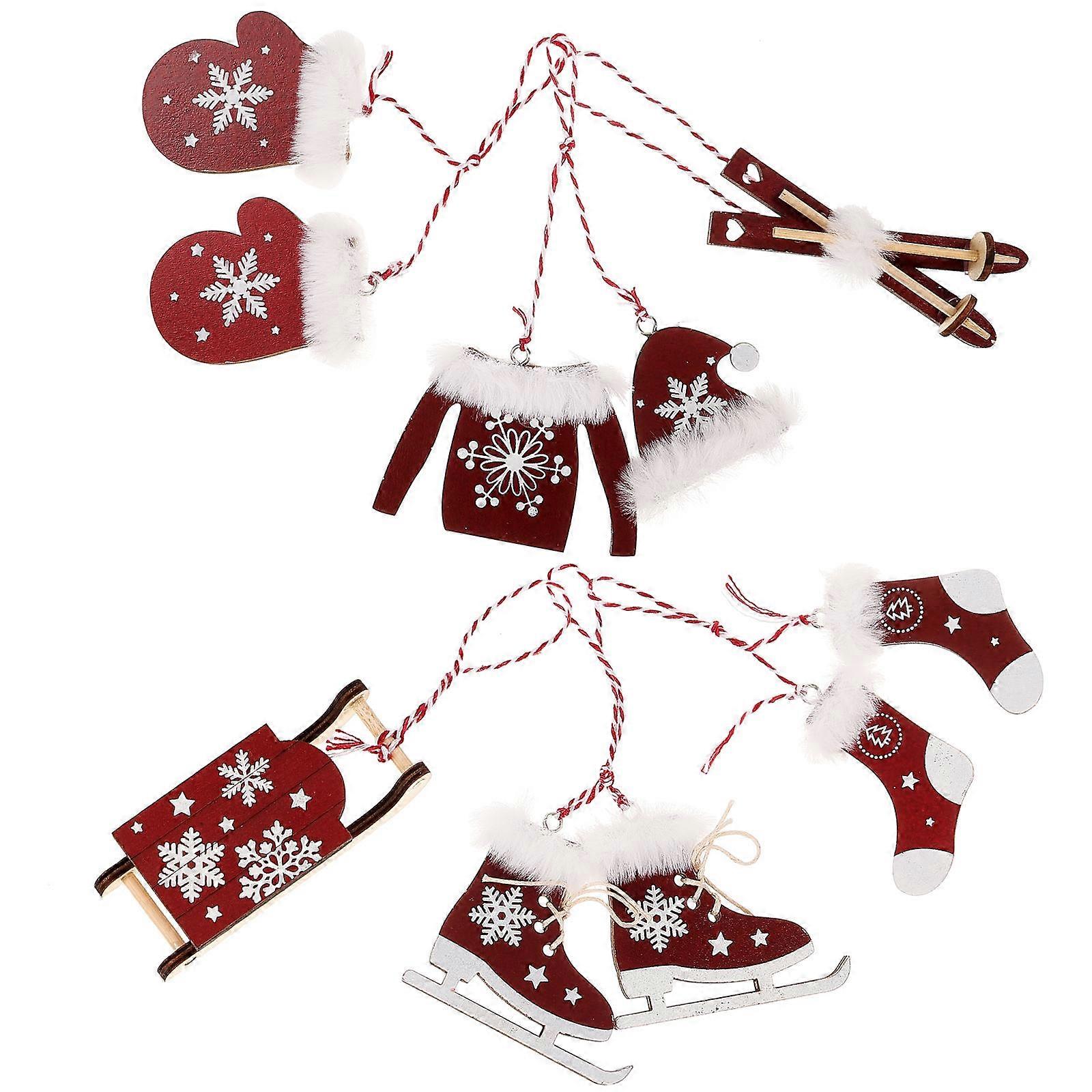 Small Tree Ornaments Sled Shaped Wooden Dark 2x4 2cm Hanging Ornament 6Pcs