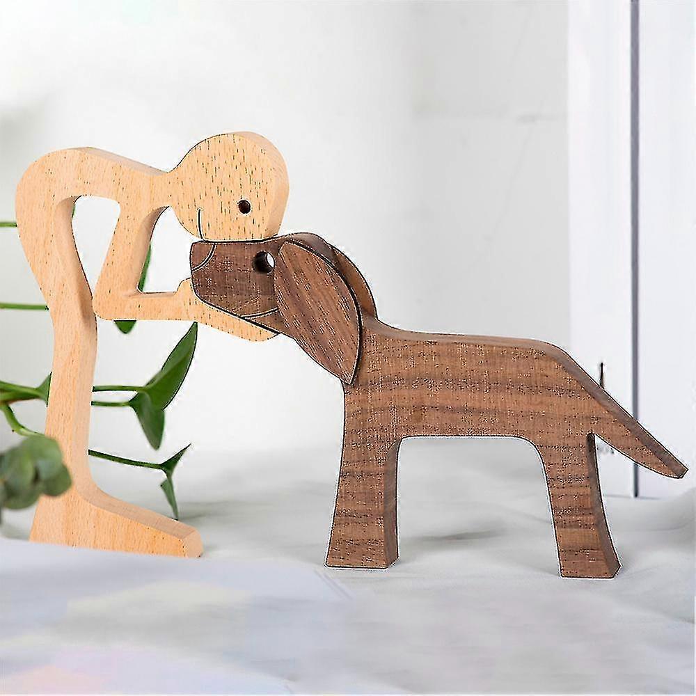 Ornament Dog And Man Carved Wooden Sculpture Decor Exquisite Desktop Ornaments