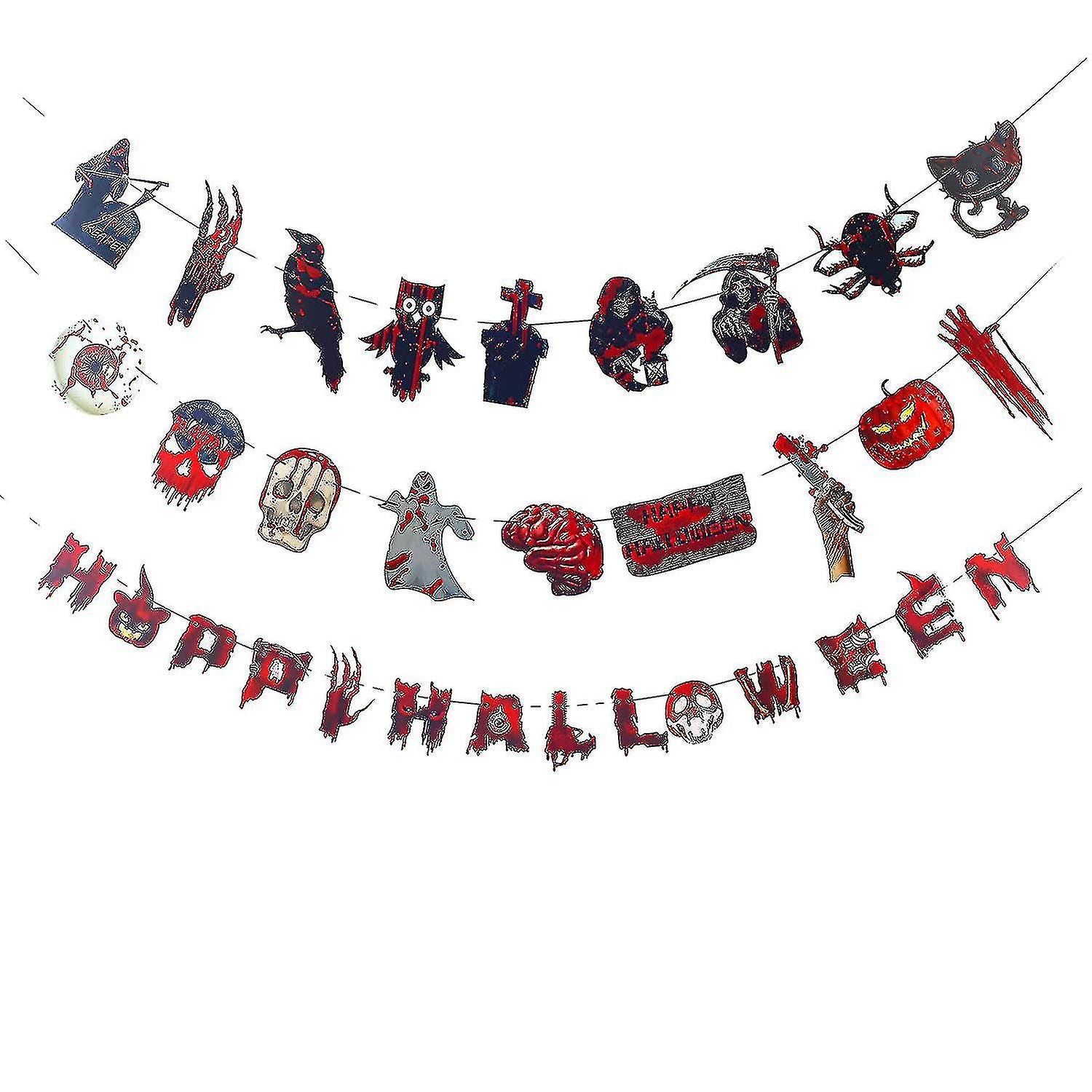Halloween Party Decorations Set: Including 3 piece Halloween theme banner,happy halloween letters, Ghost Banner and skeleton banner.Diverse halloween elements are grouped together,great for creating Halloween party atmosphere. Premium Quality: Our Happy Halloween Banner is made of premium thickened paper card ,you can put the ribbon through each flag pennant. Easy To Use: Halloween themed banners are very easy to hang and decorate both inside and outside, like home, wall, bedroom, dining room, ceiling, fireplace, window, garden, branches, fences, restaurants, bars ans so on. Unique Design:The banner uses popular black and red, bright and vibrant, it will make your Halloween hanging banner decoration more unique and attractive. Widely ApplicationHalloween party banner is perfect for your Halloween party supply,home mantel decor,other indoor or outdoor decorations.Also suitable for various occasions that need to create a horror atmosphere,as Halloween parties,masquerades,horror themed activities,haunted houses,etc. Color: Multicolor Size: 3m in total length Quantity delivered: 3 pieces.Items from Sheng Xinshun's shop