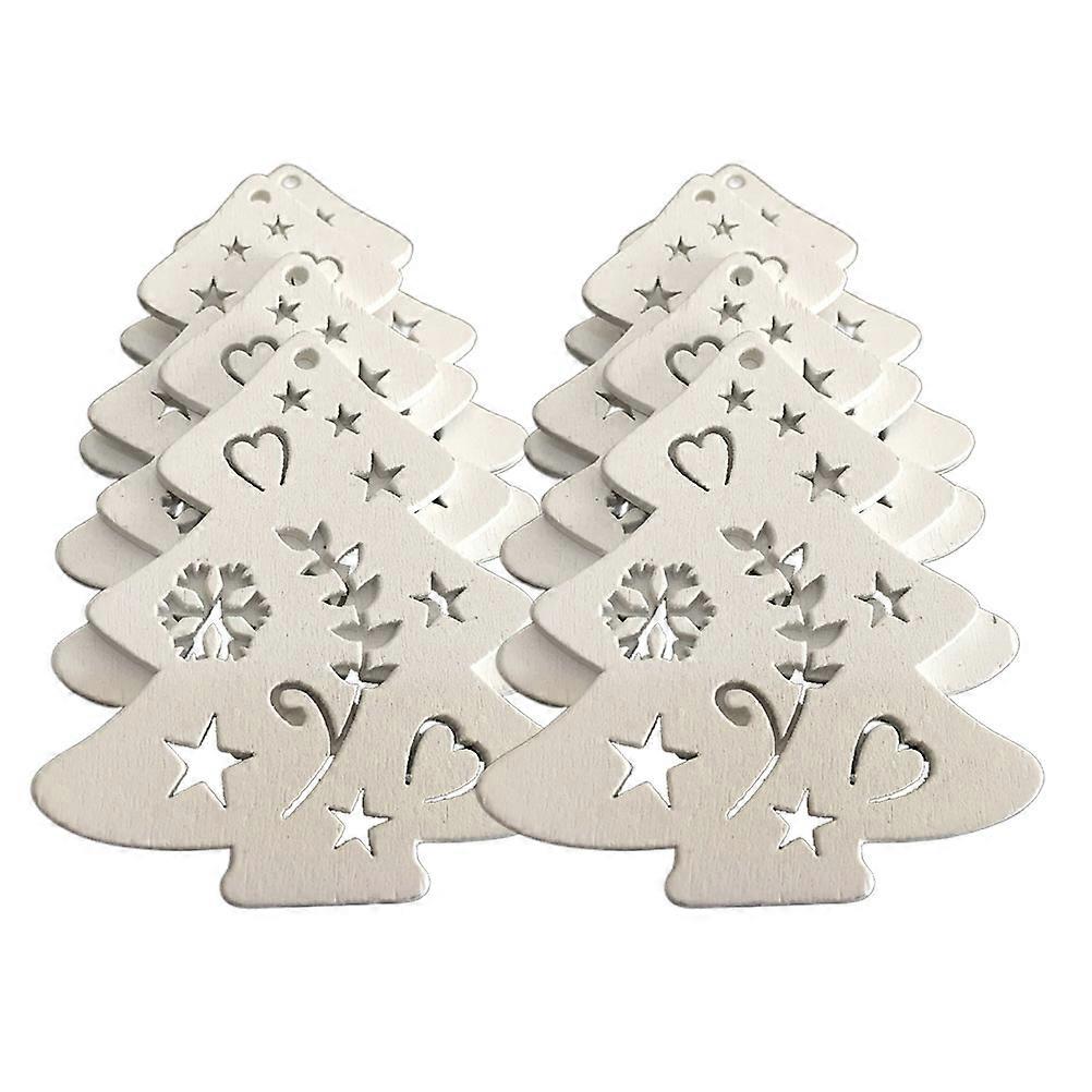Wood Ornament Craft Christmas Tree Shaped Decor Accessory For Indoor Decoration White Color 7x5.7x0.1cm 10Pcs