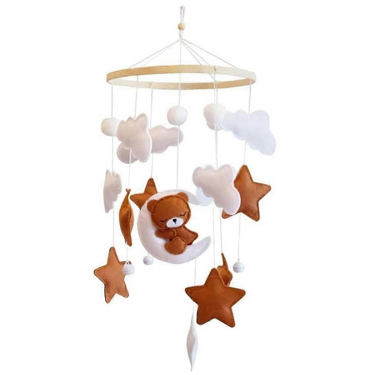 Baby Crib Decoration, Wooden Star Moon Bear Decoration, Suitable for Newborn Boysand Girls, Bed Bell