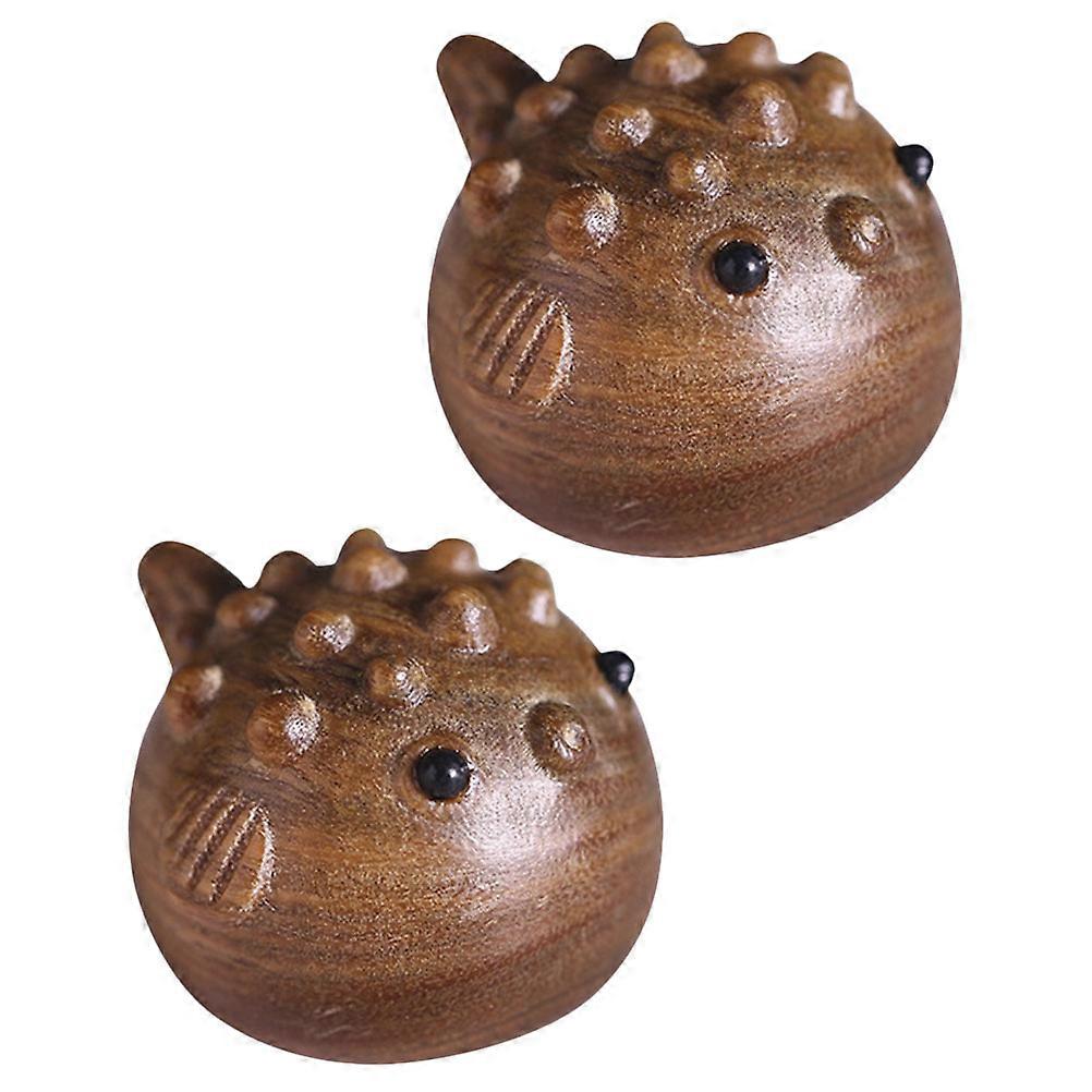 Brown Wooden Globefish Ornament for Home Decor Simple Style Wood Craft 2 Pieces