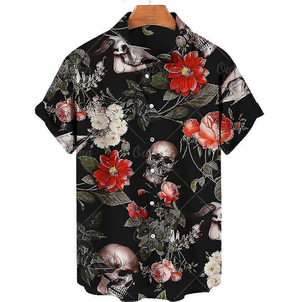 Men's Flower Short Sleeve Hawaiian Shirt, Men's Casual Skull T-shirts