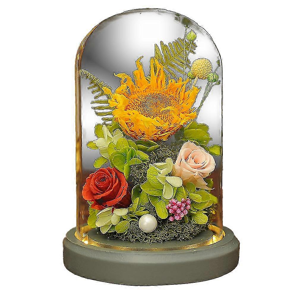Real Carnation Flower In Glass Dome And Wooden Base Unique Gift, Valentine's Day, Thanksgiving, Xmas