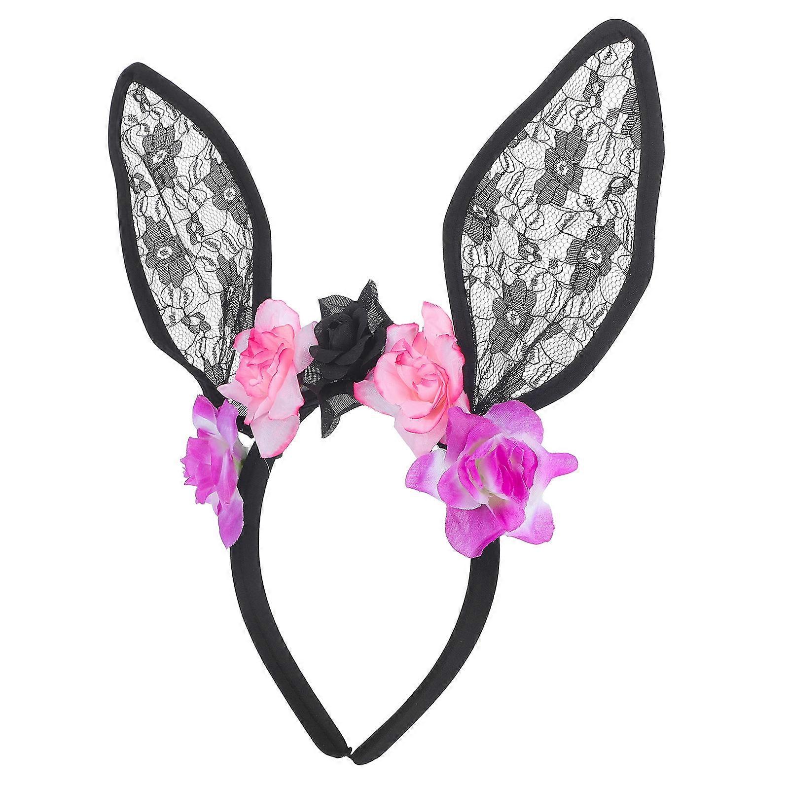 Flower Rabbit Ear Headband Halloween Headpiece Women Carnival Masquerade Party 1Pcs