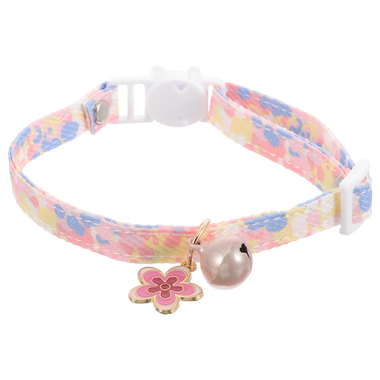 Flower Dog Collar Cartoon Design Adjustable Bell Sound Pink 8.5x8.5cm 1Pack