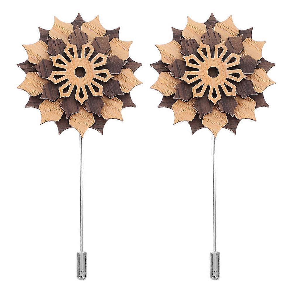 Flower Boutonniere Wooden Flower Brooch Versatile Special Occasions Metal Accessory 9.60X4.70X1.10CM 2Pcs