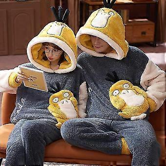 زوجان بيجاما مجموعة نسائية شتوية شتوية سميكة بيجاما كارتون ديناصور كوري زوجان المنزل ارتداء لينة دافئة بيجاما هوديي