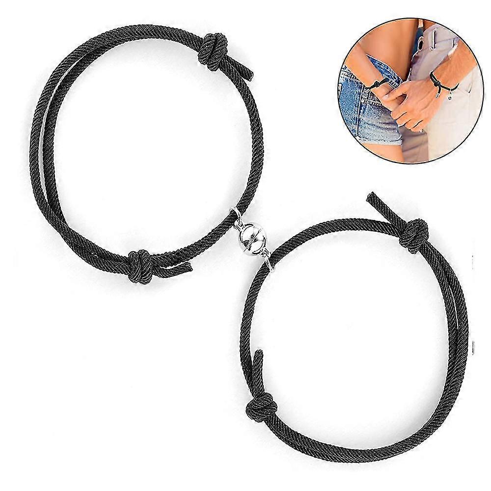 Couple Bracelets Magnetic Charm Pendants Braided Rope Bracelet With Magnetic Bells Vows Of Eternal Love Charms 1 Pair Compatible With Women Men-MXBC