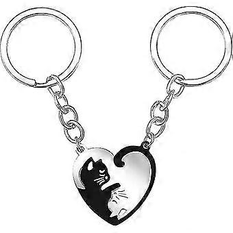 زوجين سلسلة المفاتيح، قلب على شكل القط عشاق سلسلة المفاتيح الذكرى السنوية هدايا الصداقة القط لغز تذكار سلسلة المفاتيح، عيد الحب القلب سحر قلادة