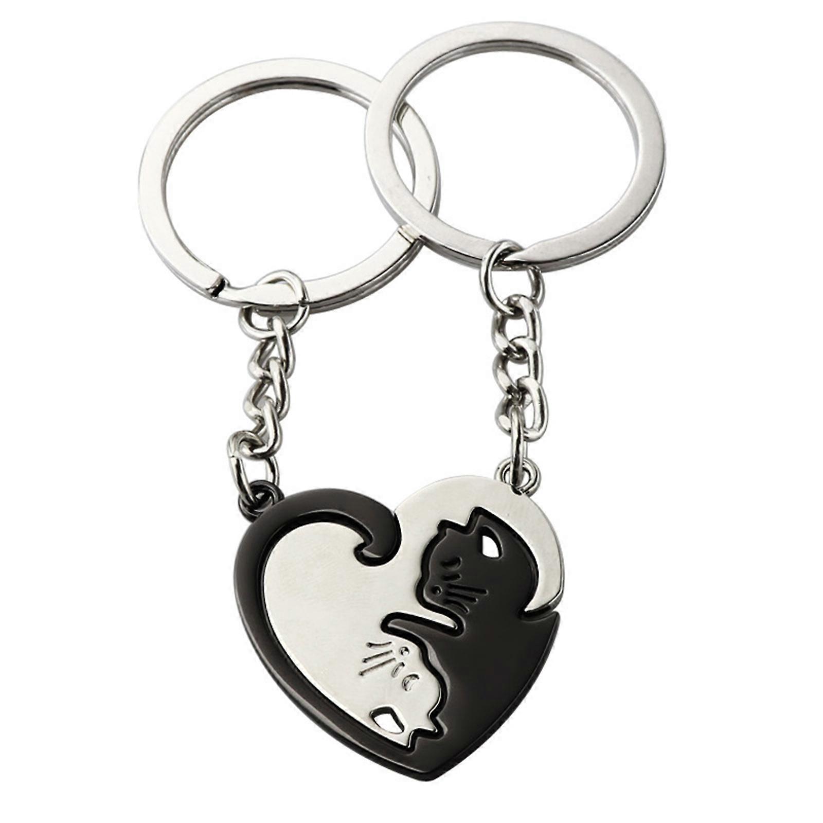 Couple Keychain Cute Black White Matching Puzzle for Cat Animal Charm Pendant Heart Shaped Metal Keyring Valentines Gift